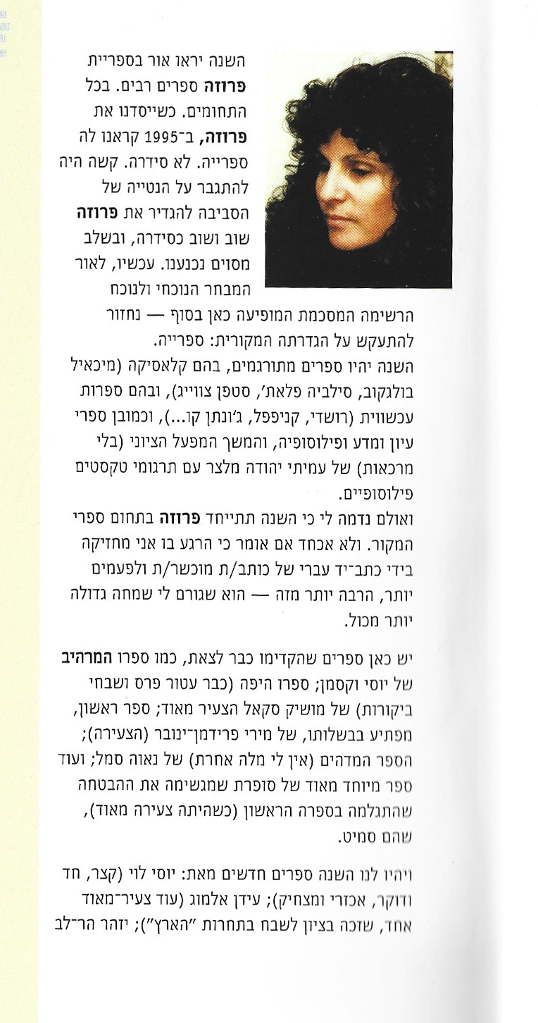 שלה בהוצאת ידיעות אחרונות, הזמינה אותי תמיד לכל הפרויקטים הספרותיים שיזמה, ואולי אם היא הייתה מעורבת בעוד כאלה